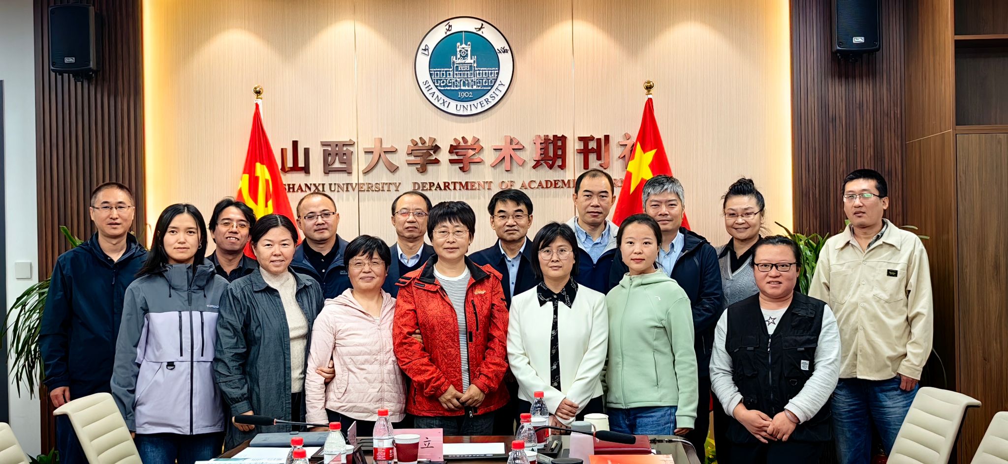 为了进一步提升学报的办刊质量,优化管理模式,拓宽编辑团队的工作视野,10月11日上午,由出版中心主任李迎春教授带队,各学报编辑部老师温新瑞、刘幼立、邵坚婷、马慧明、刘宏艳、李飞跃等一行七人,前往山西大学学术期刊社进行调研交流。山西大学学术期刊社曹永胜社长、吴艳波副社长、赵斌副社长,以及各学报编辑部的负责人和编辑参加了本次交流会。
