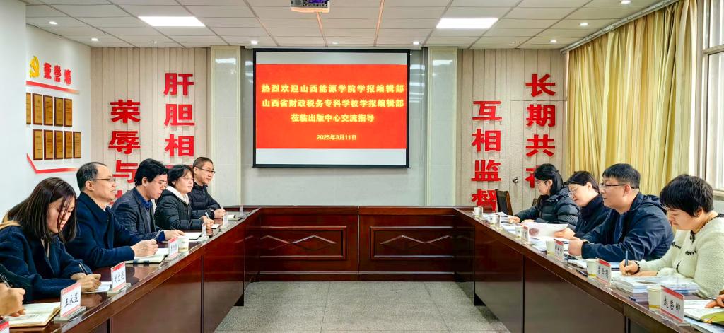 2025年3月11日上午,山西能源学院科技产业部(对外交流部、学报编辑部)两位部长翟志伟、崔泽园与山西财政税务专科学校科研服务中心主任、学报副主编田莉,以及期刊编辑一行6人,到访出版中心,就目前学报在审稿、约稿、编校、传播以及提高学报质量等方面进行了交流座谈。出版中心全体职工参加了本次交流会。