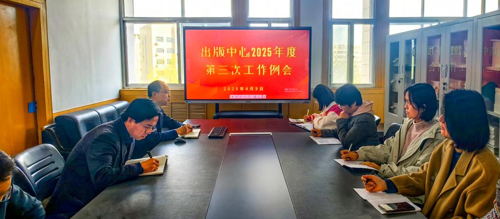 2025年4月9日上午,出版中心组织召开2025年度第三次工作例会。本次会议以“细化目标任务”为主题,由李迎春主任主持,中心全体职工参加。