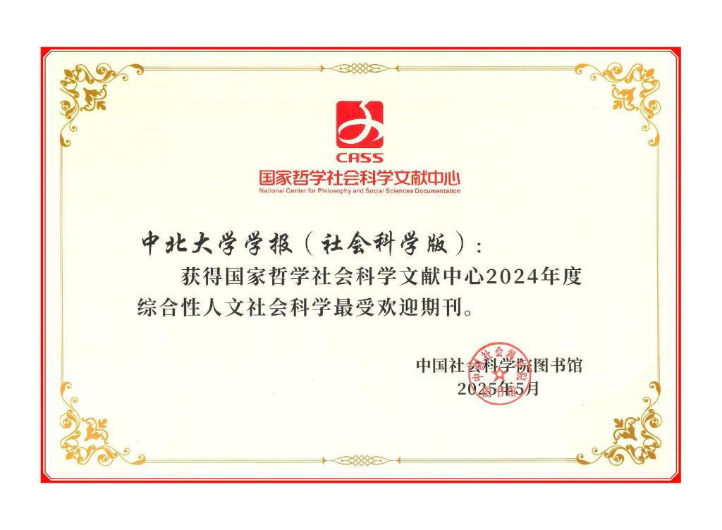 《中北大学学报(社会科学版)》获得国家哲学社会科学文献中心2024年度综合性人文社会科学最受欢迎期刊!