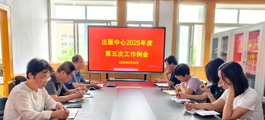 2025年6月30日上午,出版中心在会议室召开了2025年度第五次工作例会暨编辑技能学习交流会。会议由出版中心主任李迎春教授主持,中心全体职工参加。会议围绕学期工作总结、核心任务推进及业务能力提升等关键议题展开深入研讨。