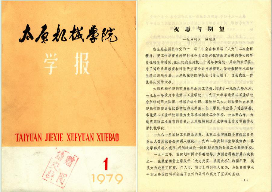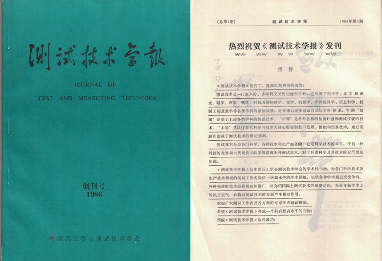 《测试技术学报》1986年创刊,时任兵器工业部部长的邹家华为《测试技术学报》题写了刊名,同时题写“一丝不苟”勉励学报要认真办刊,注重质量。时任太原机械学院院长的祖静题写发刊词,祝贺《测试技术学报》的创办,并提出了期望,指明了办刊方向。